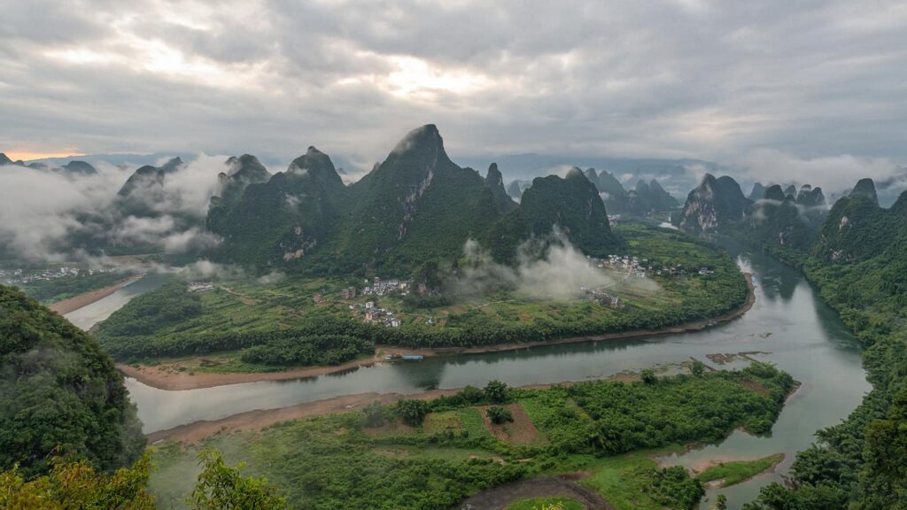 Guilin i Yangshuo su svjetski poznati po svojim kraškim pejzažima, gdje se kreščni vrhovi uzdižu iznad rijeka, rižinih polja i sela. Krstarenje rijekom Li od Guilina do Yangshuo (83 km, ~4 sata) najpopularniji je način divljenja pejzažu, prolazeci pored znamenitosti poput Nine Horse Fresco Hill. U Yangshuo, vožnja biciklom kroz rižina polja, planinarenje na Moon Hill, ili splavovanje rijekom Yulong nude bliži pogled na seosku krajinu. Region je također centar za penjanje po stijenama, splavove od bambusa i kurseve kuvanja.