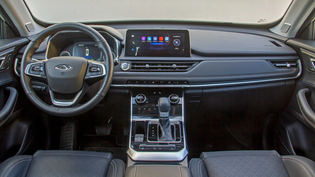 Stig ind i Tiggo 8, og du finder et velforsynet interiør beklædt med kunstlæder. De tunge døre dækker karmen fuldstændigt, hvilket giver en premium-følelse. Bemærkelsesværdige funktioner omfatter: