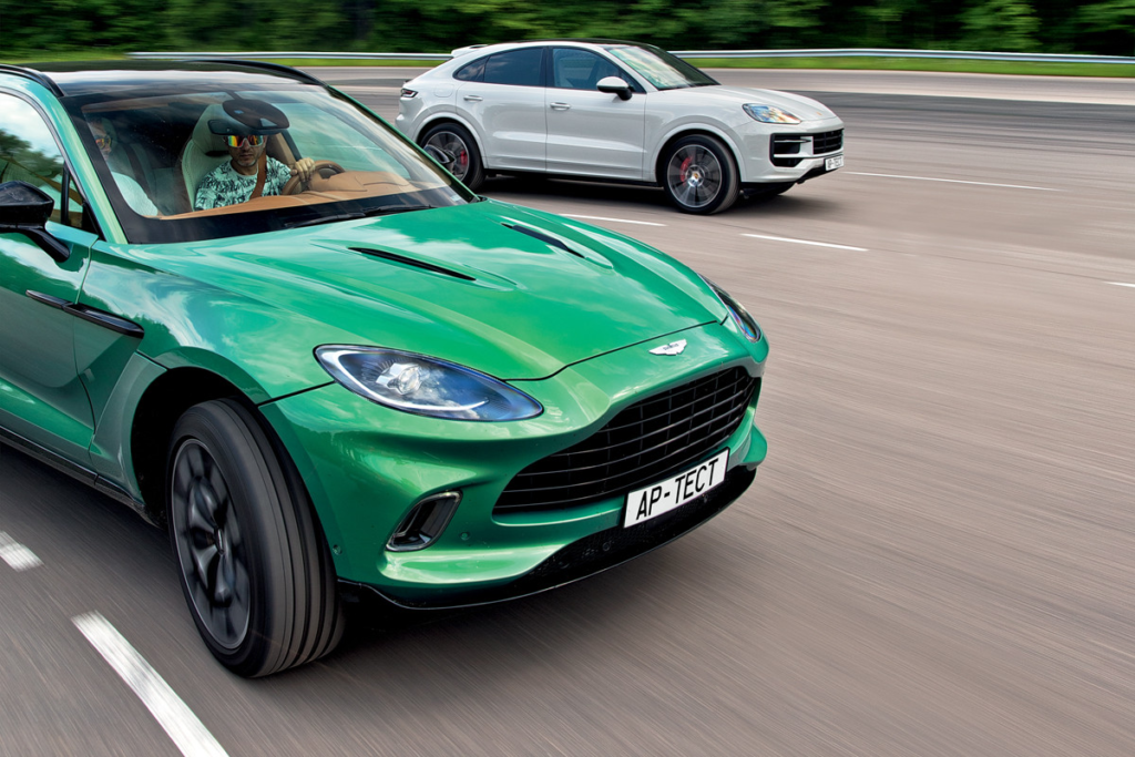 Test durchgeführt mit 2021 Aston Martin DBX (550 PS) und 2024 Porsche Cayenne S Coupe. Die Ergebnisse können bei verschiedenen Modelljahren und Spezifikationen variieren.