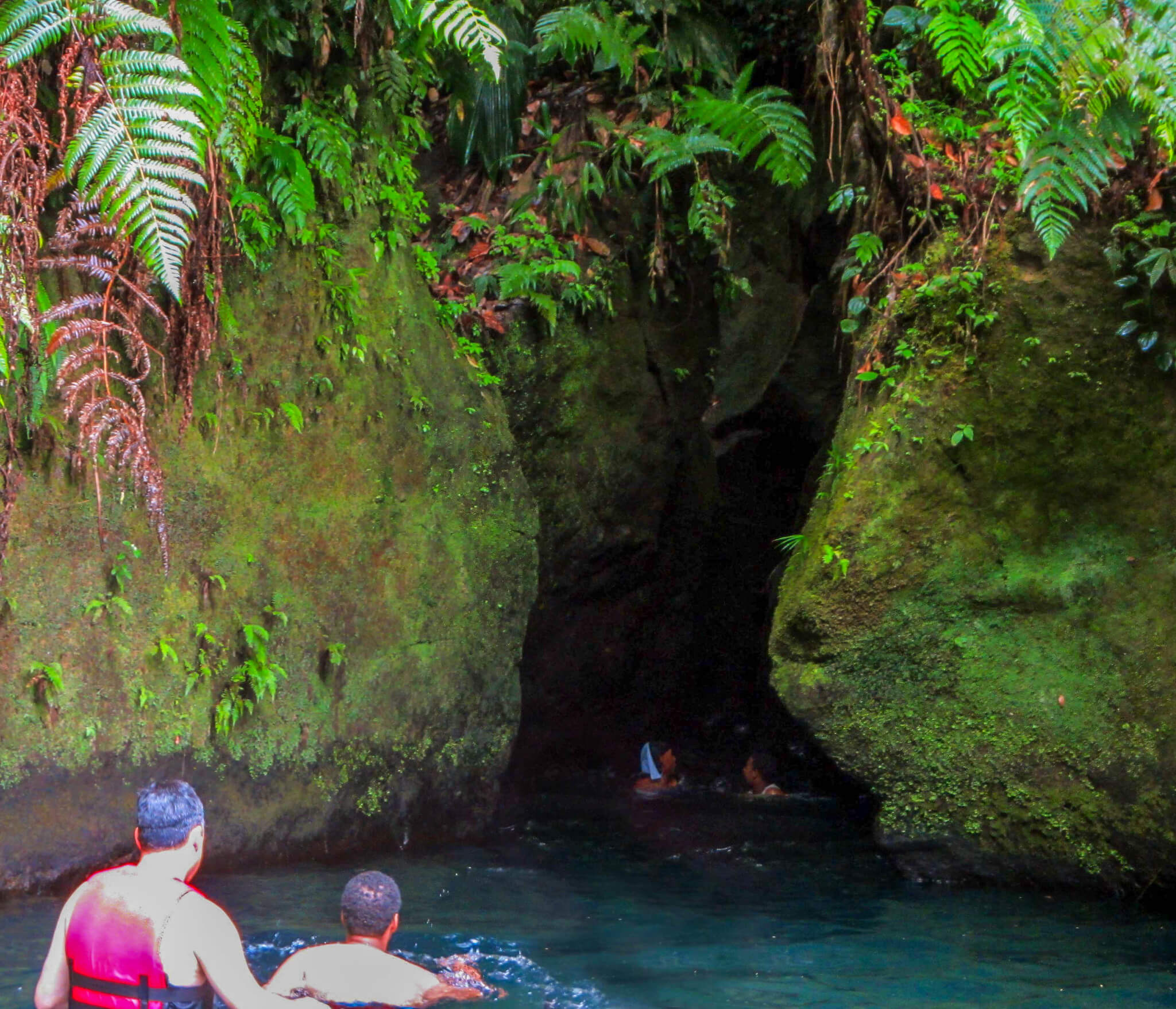 Titou Gorge ist eine schmale vulkanische Schlucht in der Nähe von Laudat, die durch abkühlende Lava entstanden ist, die tiefe, mit Wasser gefüllte Durchgänge geschaffen hat. Das klare, kühle Wasser der Schlucht fließt zwischen steilen Felswänden, die mit Farnen und Moos bedeckt sind, und schafft eine magische Atmosphäre, die sich versteckt und unberührt anfühlt. Besucher können durch die Schlucht schwimmen oder sanft treiben, vorbei an kleinen Wasserfällen und Lichtflecken, die durch die Öffnungen oben hereinfiltern.