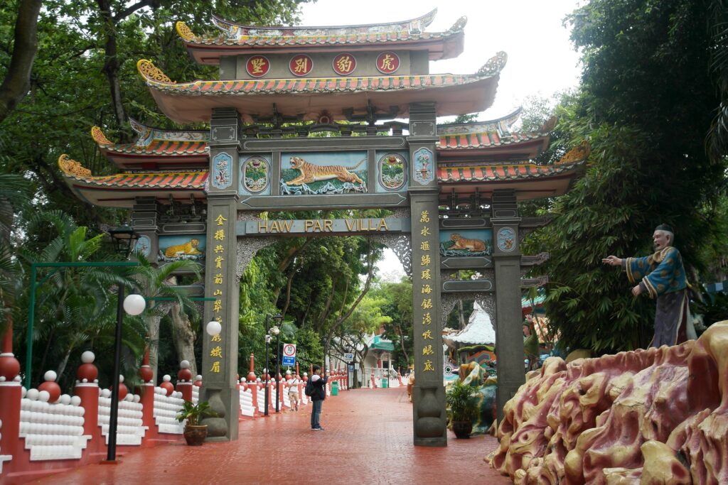 Haw Par Villa, construit en 1937 par les créateurs du Baume du Tigre, est l’une des attractions les plus insolites de Singapour. Ce parc thématique en plein air contient plus de 1 000 statues et 150 dioramas représentant des scènes du folklore chinois, des légendes taoïstes et des enseignements bouddhistes. La section la plus célèbre – et inquiétante – sont les Dix Cours de l’Enfer, qui illustrent graphiquement les punitions pour les péchés dans l’au-delà, la rendant à la fois éducative et troublante. Au-delà de cela, le parc présente des personnages comme le Bouddha Rieur, les Huit Immortels et même d’étranges mélanges de figures orientales et occidentales.