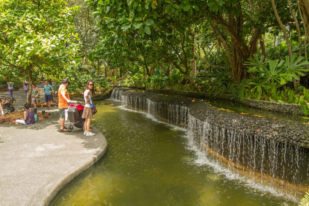 Singapore Botanic Gardens, un site du patrimoine mondial de l’UNESCO, est un parc luxuriant de 82 hectares au cœur de la ville et l’un des espaces verts les plus aimés de Singapour. Des sentiers de promenade ombragés serpentent devant des lacs, des parcelles de forêt tropicale et des jardins thématiques, en faisant un lieu de prédilection pour les joggeurs, les familles et les pique-niqueurs. Le point culminant est le National Orchid Garden, abritant plus de 1 000 espèces et 2 000 hybrides, y compris des orchidées nommées d’après des dirigeants mondiaux et des célébrités. Les autres attractions incluent Swan Lake, le Ginger Garden et une petite forêt tropicale plus ancienne que la ville elle-même.