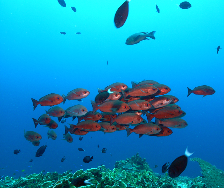 Kimbe flói, á norðurströnd Nýja Bretlands, er sjávarparadís raðaður meðal fjölbreyttustu kórallrifakerfa jarðar. Vísindamenn hafa skráð yfir 400 tegundir kóralls og 900 tegundir fiska hér, sem gerir það að draumáfangastað fyrir kafa og snorklara. Flóinn er blettótt með sjávarfjöllum, kóröllum og WWII rokum, þar sem gestir geta séð allt frá dverg sjáhestum og kórallaháka til skóla af barrakúda og delfínum.