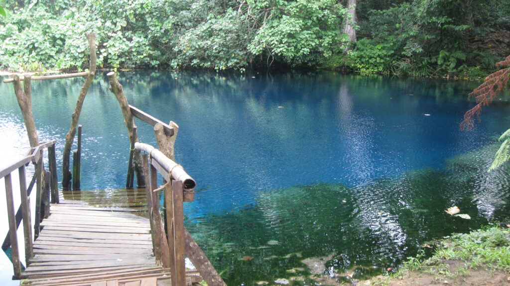 Espiritu Santo minangka pulo paling gedhe ing Vanuatu lan swarga kanggo wong-wong sing pengin campuran pantai, petualangan, lan sejarah. Pantai Champagne asring diarani salah siji sing paling apik ing Pasifik Kidul, kanthi pasir putih lan banyu kristal bening sing nggawe sampurna kanggo nglangi santai utawa piknik. Ing njero dharatan, pulo iki ndhelikake keajaiban alam kayata Blue Holes – Nanda, Matevulu, lan Riri – ing ngendi banyu tawar murni mencorong ing warna biru sing nggumunake, cocok kanggo nglangi utawa kayak ing papan alas.