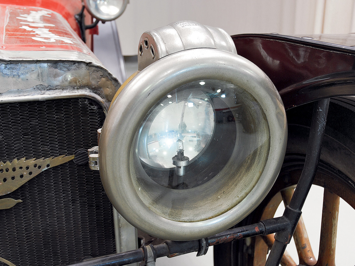 - Visible modernization: Careful observers can spot the characteristic braided wiring running to the headlamp housings instead of brass tubes, plus electric bulbs behind the hinged glass covers