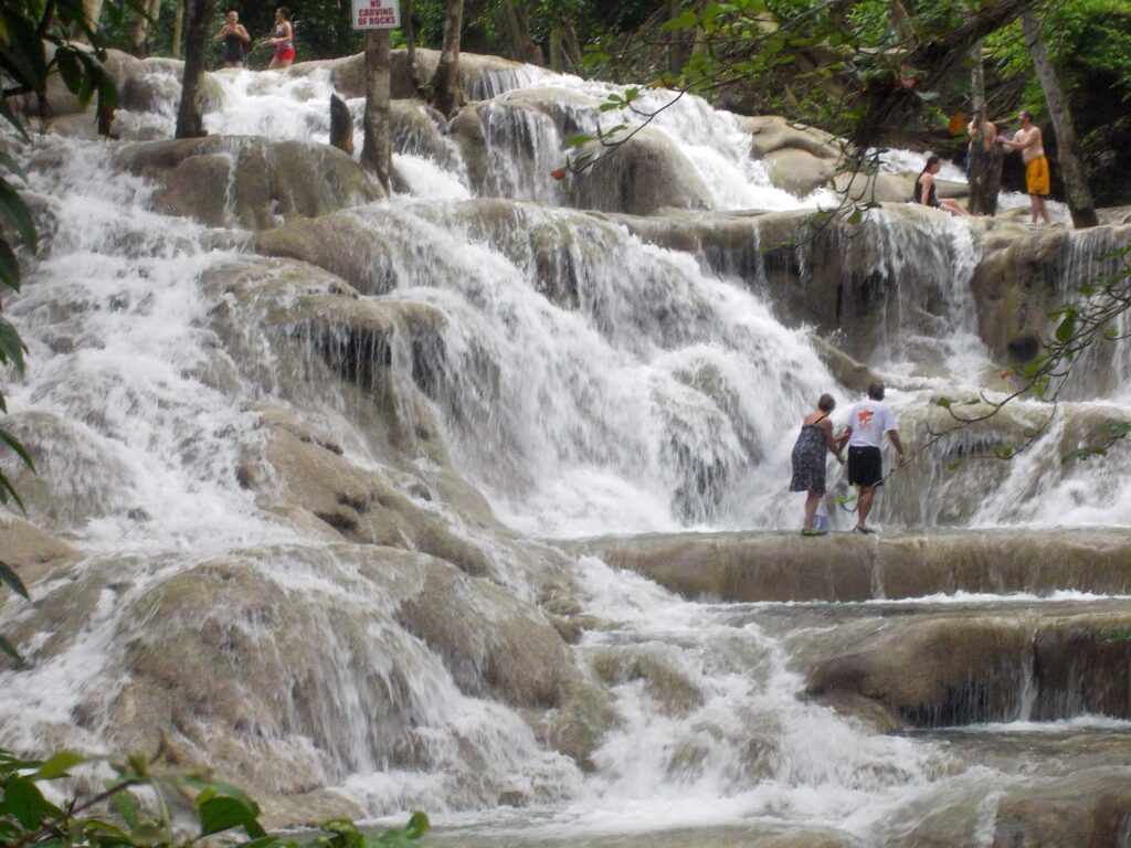 Dunn’s River Falls, located near Ocho Rios, is Jamaica’s most famous natural attraction and a must-visit for any traveler to the island. The 180-meter terraced waterfall flows directly into the Caribbean Sea, creating a series of natural pools and limestone steps perfect for climbing or relaxing. Visitors often join hands to ascend the falls with the help of local guides, making it both a fun and social experience.