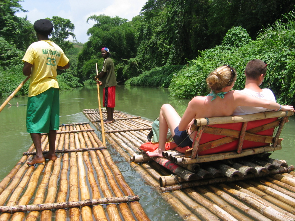 The Martha Brae River, located near Falmouth on Jamaica’s north coast, offers one of the island’s most relaxing and memorable experiences. Visitors glide down the gentle, emerald-green river on handcrafted bamboo rafts steered by local guides, known as raft captains. As you float beneath the canopy of tropical trees, the guides share stories, folklore, and insights into Jamaican culture, creating a peaceful and immersive journey.