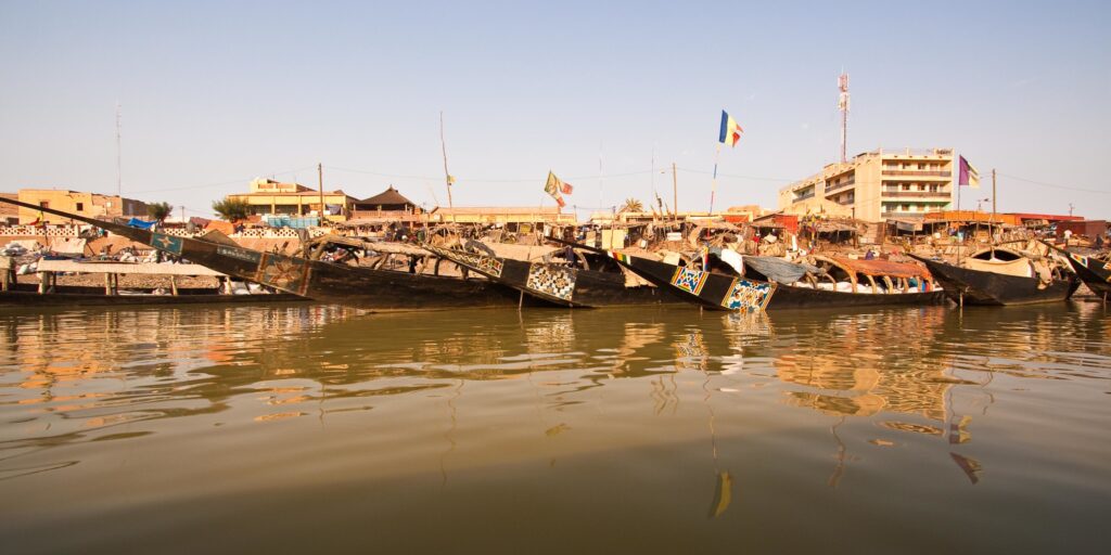 The Niger River forms the backbone of Mali’s economy and settlement patterns, supporting agriculture, fishing, and transport across much of the country. Between Ségou and Mopti, the river widens into the Inland Delta, a seasonal floodplain where water spreads into channels, lakes, and wetlands. During the flood season, communities adjust their activities—farmers plant along retreating waterlines, herders move livestock to higher ground, and fishermen travel through temporary waterways to reach productive fishing areas. The region’s cycles shape trade, food supply, and local migration.