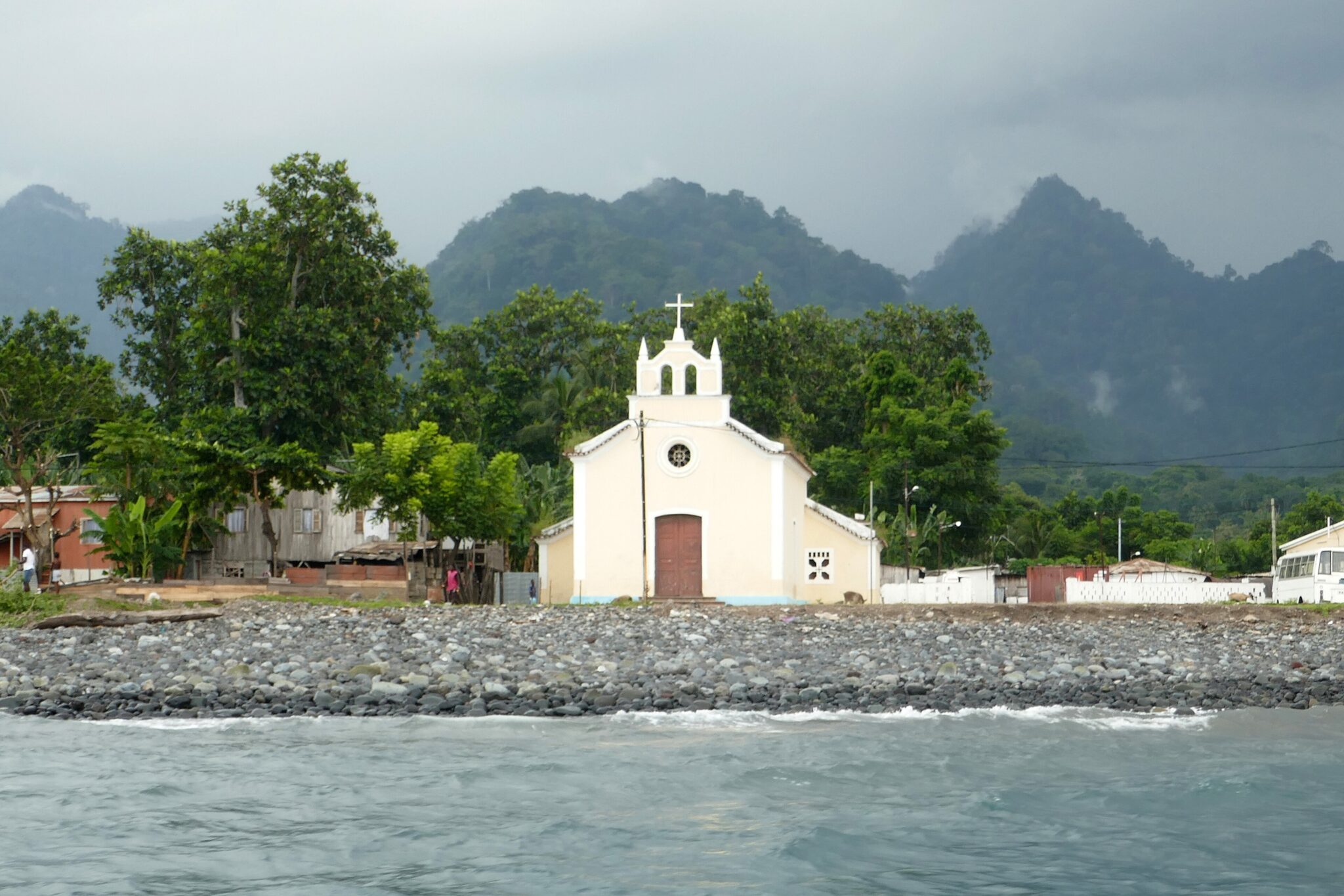 Santa Catarina is a small area on São Tomé’s north coast that people use as a low-key stop for seeing everyday village life away from the capital while still staying close to beaches and coastal scenery. Travelers come here for the north-coast road experience, with short stops for ocean viewpoints, quick beach breaks, and a look at local routines around roadside stalls, small churches, and village centers that reflect how life works outside São Tomé city. It suits visitors who want a simple day of moving along the coast and making several short, informal stops rather than committing to one major attraction.