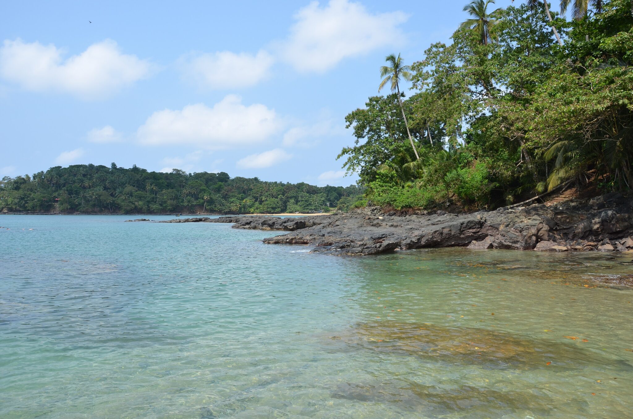 Lagoa Azul is a north-coast lagoon area on São Tomé known for clear water and good snorkeling when conditions are calm. It is an easy stop on a north-coast drive, and the visit is usually simple: short time by the water, swimming or snorkeling if visibility is good, and watching coastal scenery without the effort of a long hike. Water clarity can change quickly with tides, swell, and recent rain, so the experience varies day to day even in the same season.