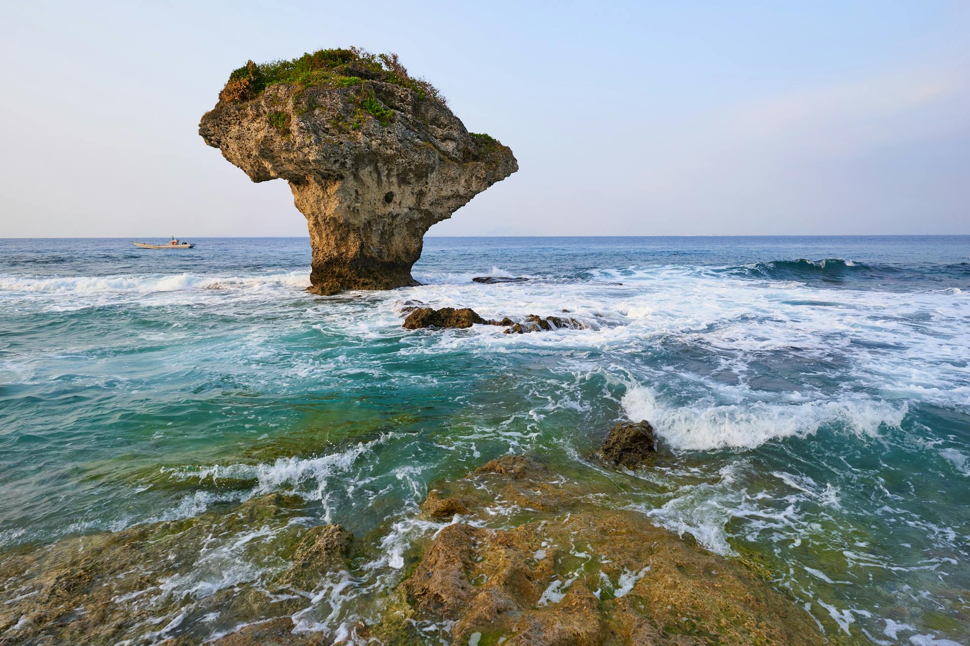 Xiaoliuqiu Island, also called Lambai Island, is a small coral island just off the coast of Kaohsiung and Pingtung. It’s one of the best places in Taiwan to snorkel with sea turtles, which can be spotted year-round in the clear waters. The island is ringed by caves and rock formations, such as Vase Rock, Beauty Cave, and Wild Boar Trench, all easily reached on a loop around the coast. Beaches like Secret Beach offer calm waters for swimming and diving.