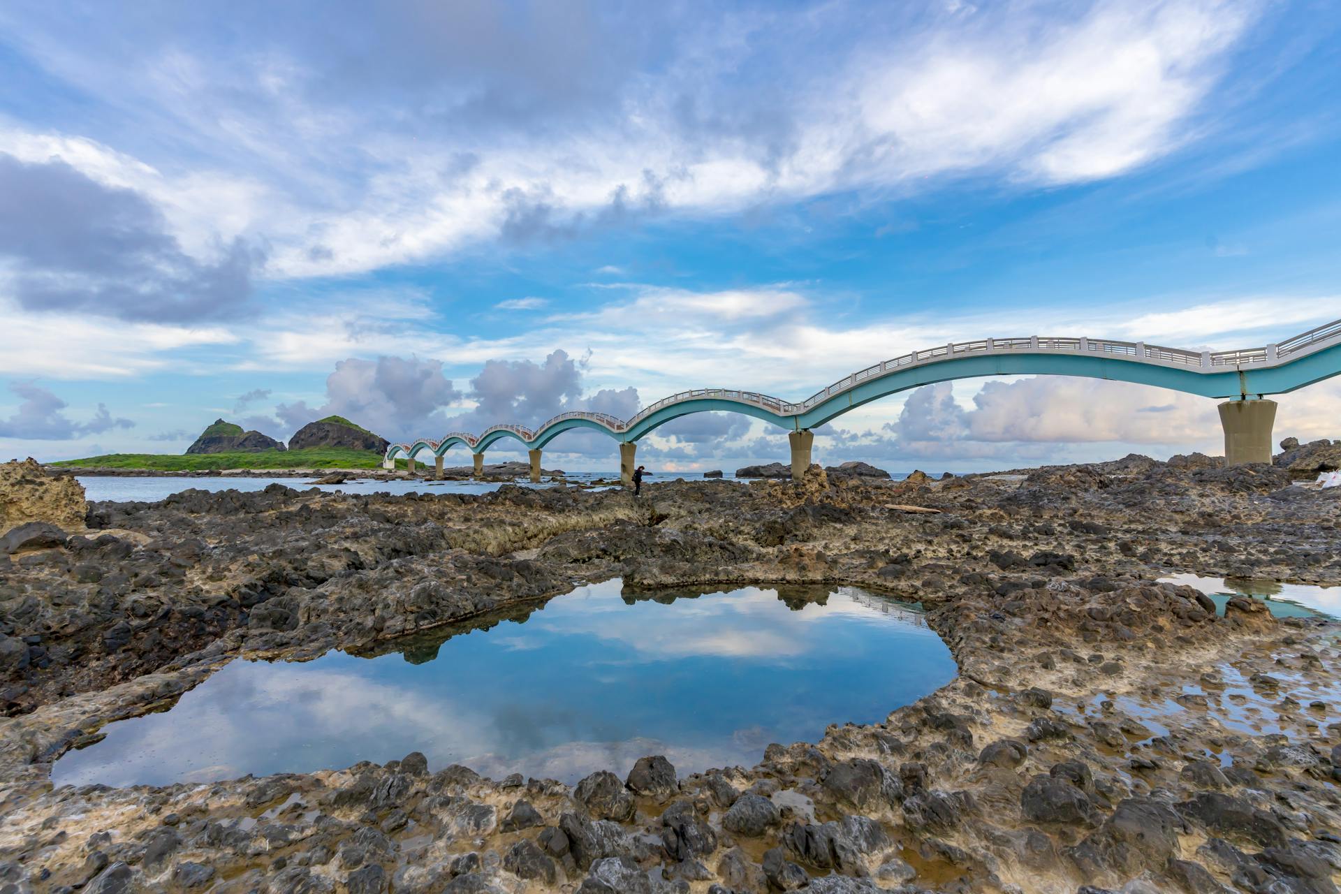Penghu Islands, an archipelago of 90 islets in the Taiwan Strait, are known for their striking basalt cliffs, historic fishing villages, and centuries-old sea temples. Highlights include the Penghu Great Bridge, the black basalt columns of Qimei’s Twin Hearts Stone Weir, and beaches like Shanshui and Aimen for swimming and water sports. The islands also preserve traditional Fujian-style houses, especially in Erkan Village.