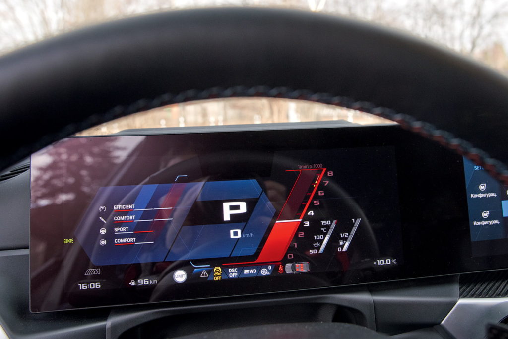 Sometimes you want to engage the sport engine mapping as well. The Efficient setting makes even this engine phlegmatic. You need to change lanes with acceleration, but the pedal feels like rubber. You push, you press—and you wait! The delays in the S58—yes, my son, it’s not a fantasy. In Sport mode, of course, the M-car accelerates brilliantly, but the transmission starts to hold onto gears, even on throttle lift-off, which reduces overall comfort. It could use an intermediate Normal mode.
