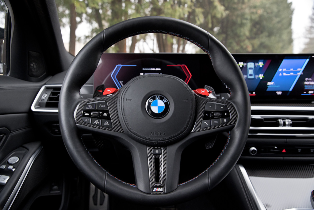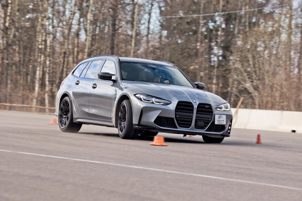 Some might complain about a slightly inherent understeer—unlike the coupe, the Touring is reluctant to respond to throttle-lift provocations. If you want a powerslide, just press the accelerator more decisively. But the Touring only proved once again that big, dramatic drifts are alien to this generation M3, unlike the previous one. A sudden breakaway of the rear wheels and an overly sharp steering rack, which demands extremely precise input, make driving in a slide exhausting. And you also need to exit it smoothly, because a quick throttle closure and regained grip, combined with the quick steering, have been the cause of many unpleasant videos online.