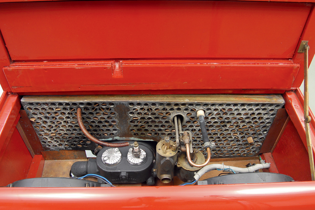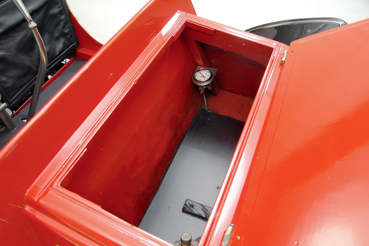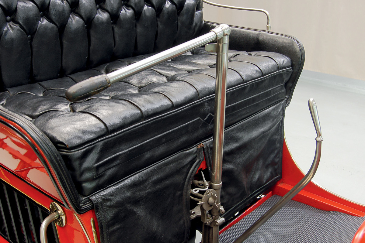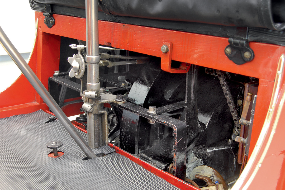 Steering: While Jeffery’s earlier experimental Models A and B featured a conventional steering wheel on an angled column, the production Model C used an old-fashioned tiller — a vertical lever rather than a wheel.
