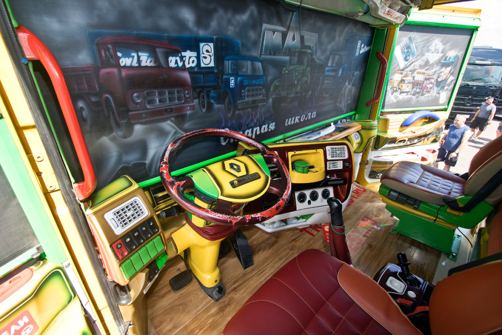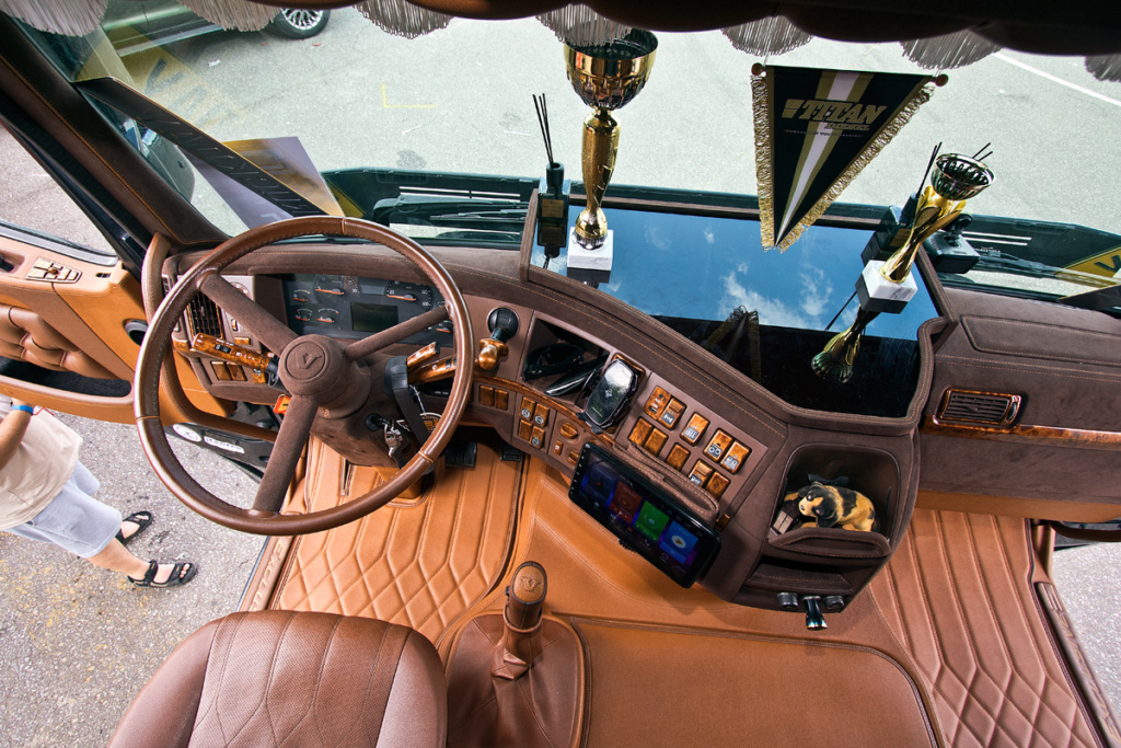A lot. A prize-winner from Klimovsk, who took home four cups — Titan, Best European, Best Custom Shop, and Best Sound — spent 4.5 million rubles on modifications by a small workshop in Krasnodar. Such truck tuning shops are slowly appearing in Russia.