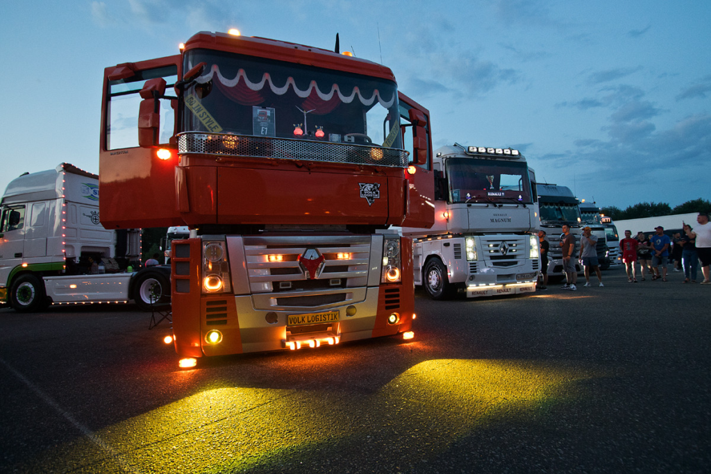 Similar vibes can be found at the annual trucker festival at the Nürburgring, coinciding with truck racing in mid-July. I’ve been there multiple times: beer and schnapps flow freely, dozens of tents sell souvenirs, trucks light up the night, and everything ends with a grand fireworks show. I’ve also attended truck shows in Louisville, Kentucky, featuring America’s most beautiful tractors. Though smaller, the sight of long-nose trucks glowing with thousands of lights at night is unforgettable.