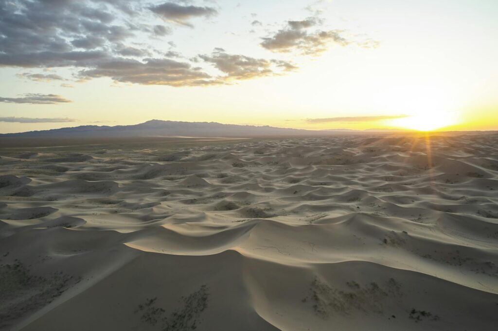 Jangwa la Gobi, linaloenea kote kusini mwa Mongolia, ni nchi ya utofauti wa kidrama – kutoka kwa ufunga mkubwa hadi miamba yenye mafossil. Khongoryn Els (“Ufunga Unaoimba”), ukiinuka hadi mita 300 kimo na upana wa km 12, ni miongoni mwa ufunga mkubwa zaidi wa Asia. Yolyn Am (Bonde la Tai) inawashangaza watembeaji kwa barafu ambazo mara nyingi hubaki hata wakati wa kiangazi, wakati Bayanzag (Miamba Inwayo) ni mahali pa ulimwenguni palipojulikana kwa utafutaji wa mafossil ya daynosoa katika miaka ya 1920. Wasafiri pia wanaweza kukaa katika kambi za ger, kupanda ngamia wa Bactrian, na kupata uzoefu wa maisha ya kimapori chini ya anga lenye nyota nyingi.